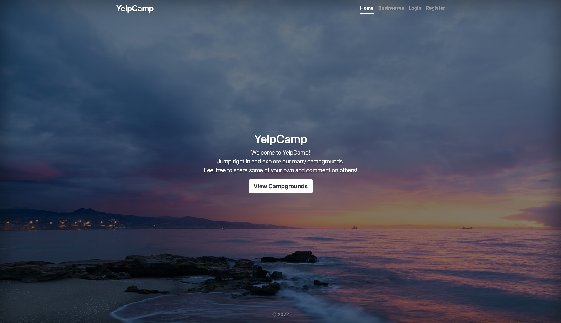 The App is Yelp Camp and it allows to search and register the campgrounds.